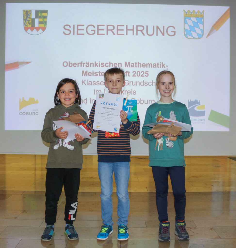 Hannes Dehler von der Grundschule Grub am Forst, Alice von der Grundschule Rödental-Mönchröden und Lennas Miro Leupolz Masovic von der Melchior-Franck Grundschule in Coburg konnten den spannenden Wettbewerb für sich entscheiden.